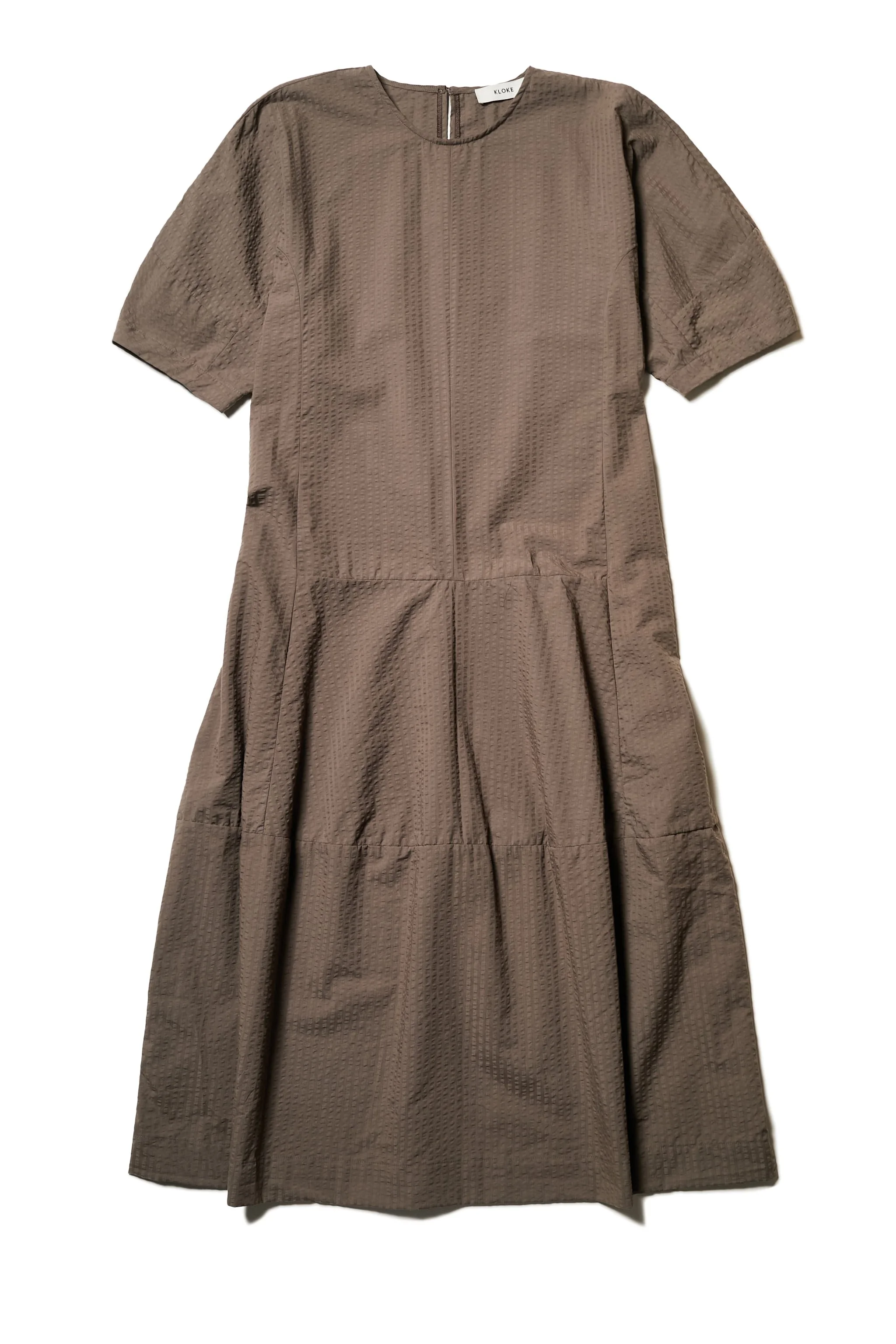 A long-panelled dress designed in a cotton seersucker with a standout voluminous sleeve. The sleeve detail is shaped in a way to accentuate the style without being overbearing. A sophisticated but easy to wear summer go to. The panel details throughout the dress give structure finishing in a fuller skirt. Crafted in soft cotton seersucker.