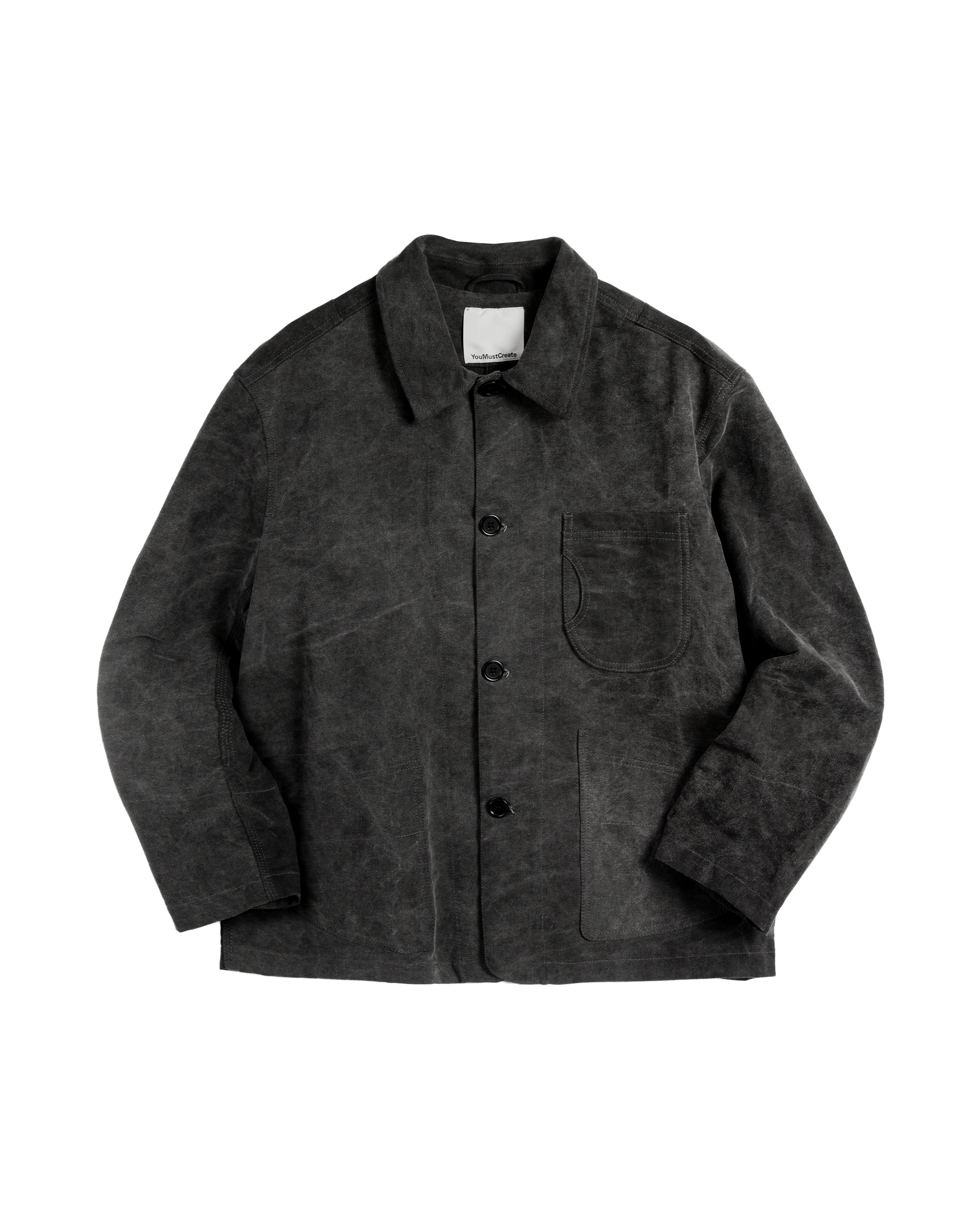 Constructed chore jacket In a shower repellant cotton blend fabric . Featuring dual entry chest patch pockets and lower patch pockets. Curzo button fastening