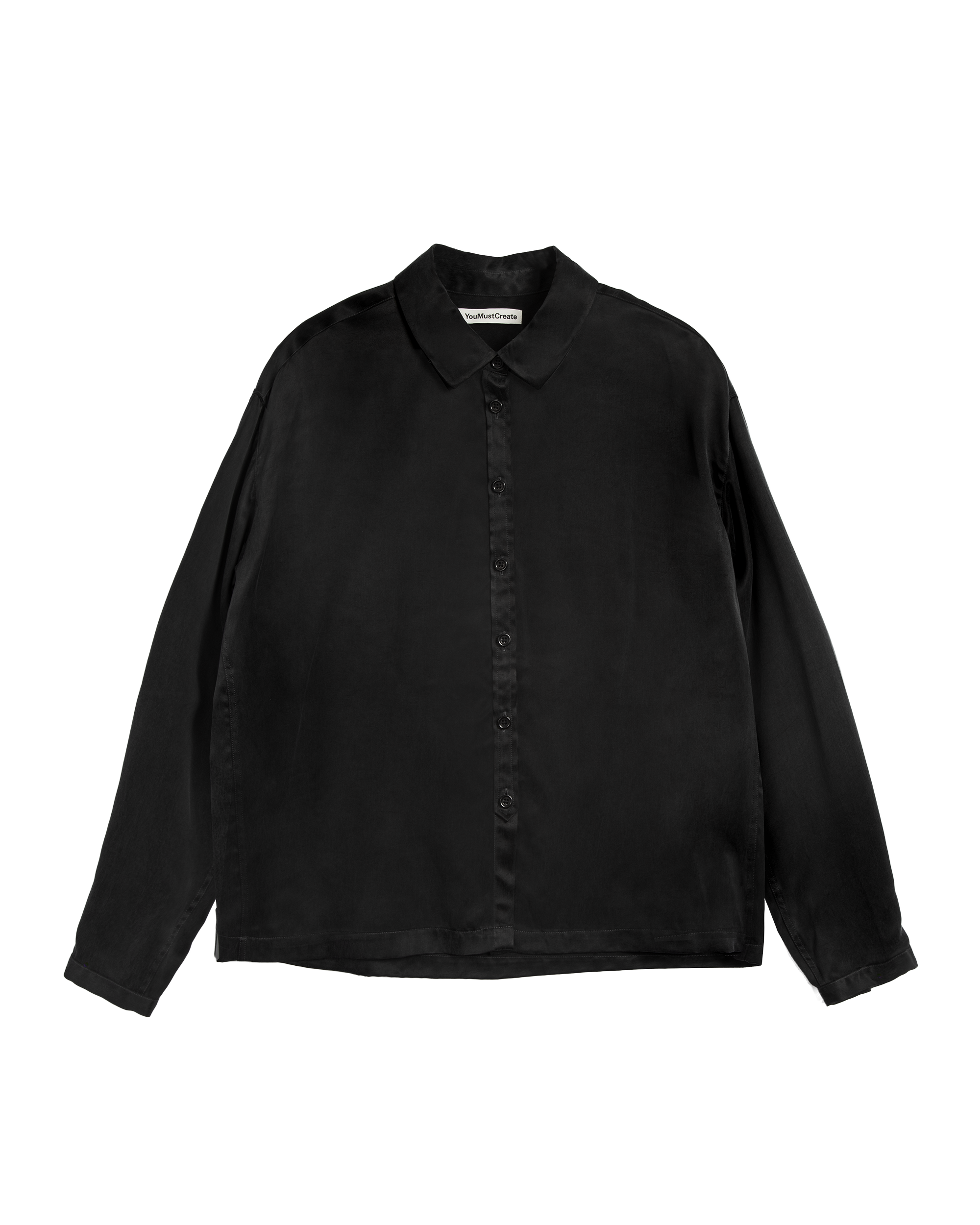 Fluid long sleeve shirt in a silk- like cupro fabric . Featuring two piece collar with mother of Pearl button fastening.
